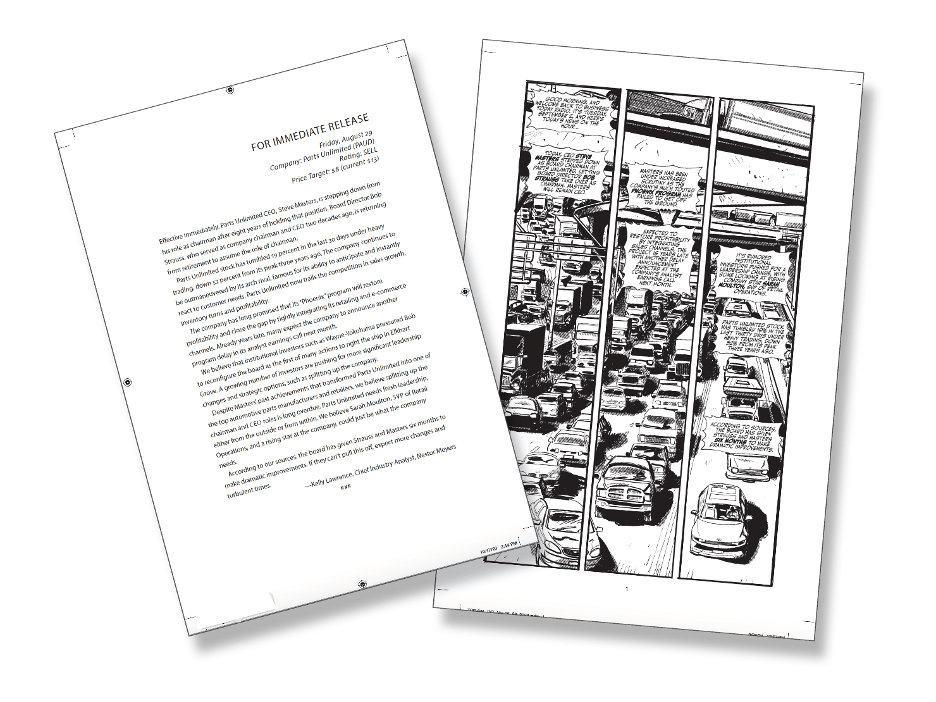 For example, a six-paragraph press release that set the stage for the entire book in the original novel needed to be condensed into just a few impactful panels. We had to make tough decisions about what information was crucial to convey visually and what could be implied or omitted.