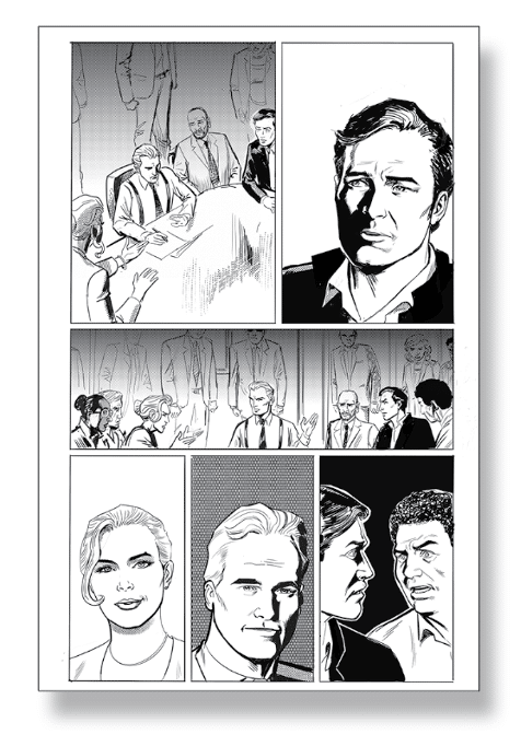 We also brought on board Mike Collins, a graphic novel illustrator extraordinaire with experience at both DC and Marvel, as well as TV. Mike’s expertise was crucial in transforming our long-form prose into a dynamic visual format.